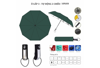 Ô gấp 3 - tự động 2 chiều - 10 nan